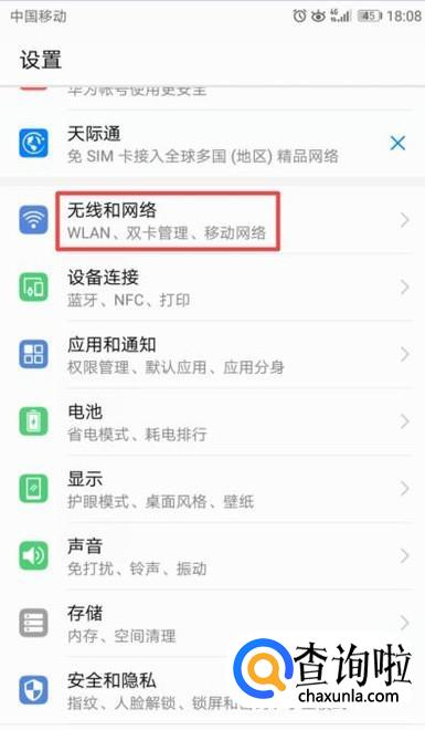 之后我们点击无线和网络,如图所示;