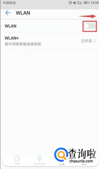 之后我们将WLAN的开关向右滑动;