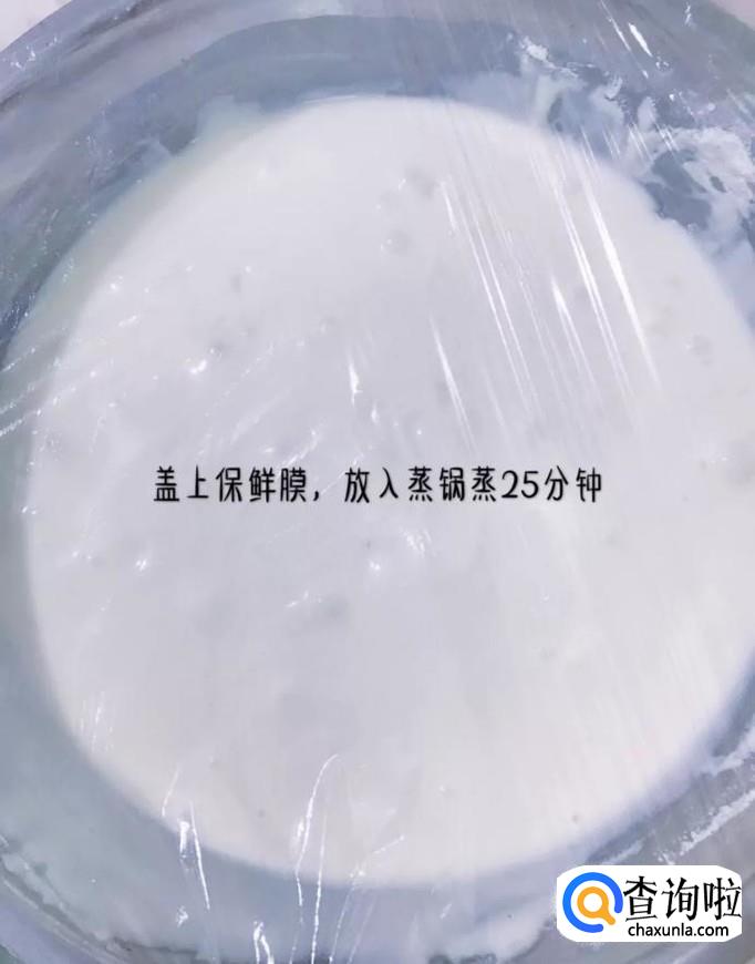 接着盖上保鲜膜,放入锅中蒸25分钟,如下图所示。