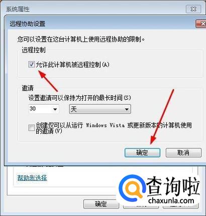 进入高级后我们勾选“允许此计算机被远程控制”。然后点击“确定”退出。