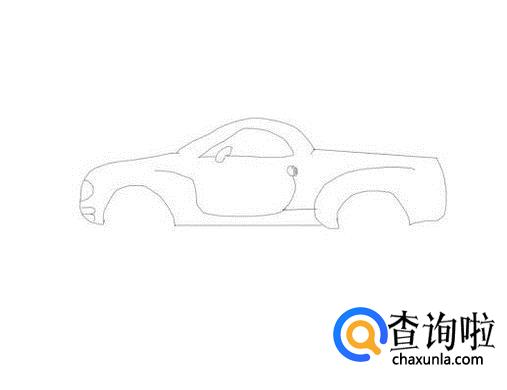 在小轿车的车体上画出窗户及观后镜,然后再画出前面的车灯,如图所示: