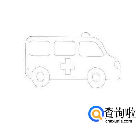 再在救护车的车体上画出救护车的窗户,然后再画出警报及车灯,最后再画出救护车上面的十字标志,这样简笔画救护车就画好了,如图所示: