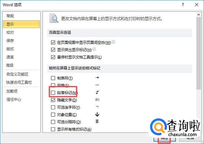 弹出的界面,我们将段落标记的勾选给取消掉,之后点击确定就可以了,还是比较简单的。