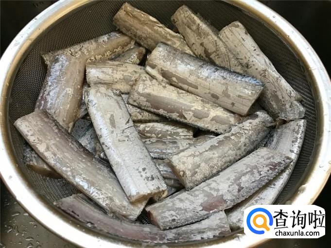 把解冻好的带鱼处理好洗干净,放入过滤中沥干水分。