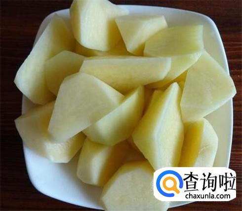 土豆清洗干净,削皮,切成滚刀状;