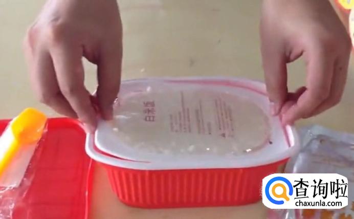 先把写有自然米饭发热包打开,放在外盒的最底层,切记不要食用。