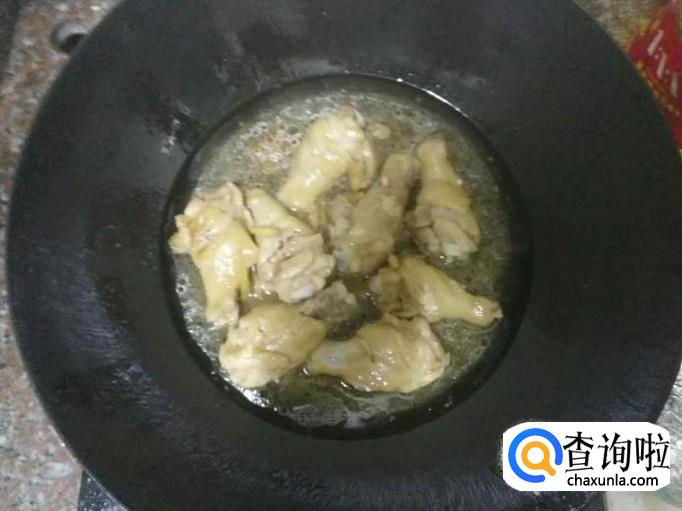 往锅里加入事先腌制好的翅根