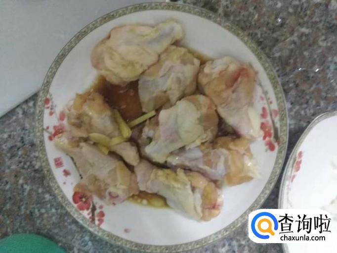用刀在每个翅根上面划几道口子,加上盐、酱油、油、白砂糖、蒜和生姜拌匀,放在一边腌制8-10分钟