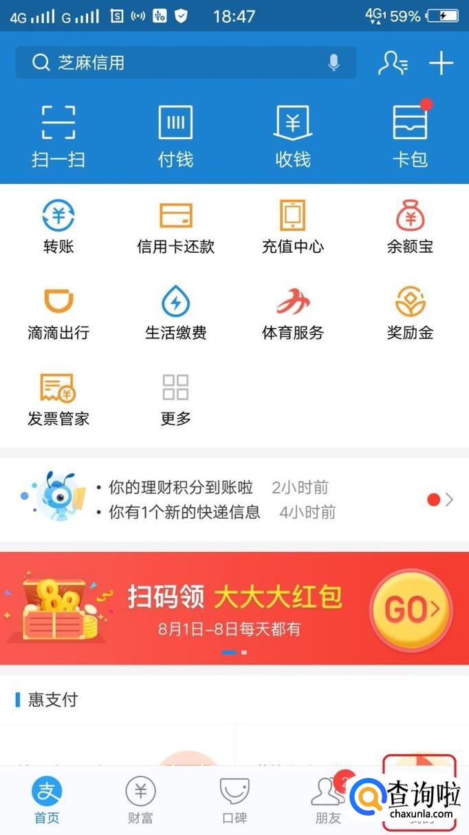 首先,我们打开手机支付宝,如图所示,点击“我的”。