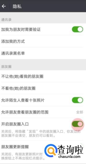 在隐私里面点击开启朋友圈入口。