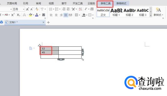 然后我们选中两个数字,之后我们点击表格工具;