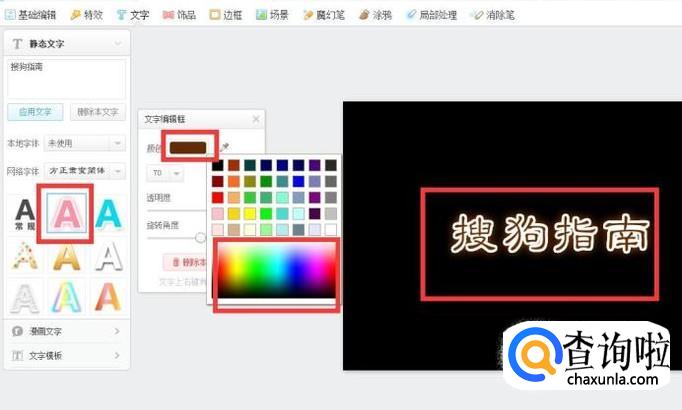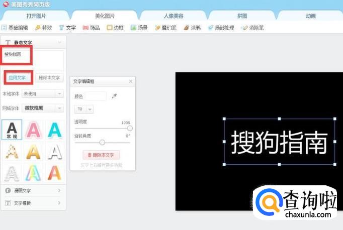 接着在静态文字框输入文字,然后点击应用文字。