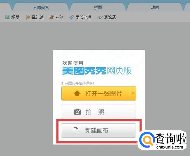 接着点击新建画布。