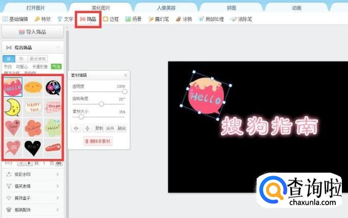 然后点击饰品,给文字添加一个好看的饰品。