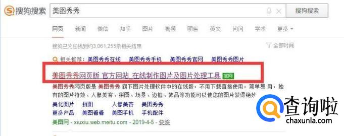 选择一个制图软件,比如美图秀秀。打开搜狗搜索,输入美图秀秀,点击官网打开。