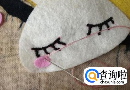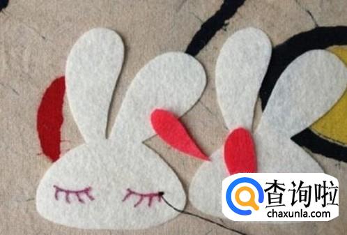 将剪下来的腮红缝到兔子的面部,两边都要缝。