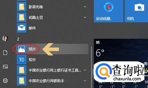 点击电脑左下角的开始菜单,然后在应用列表中点击“照片”选项,如下图...