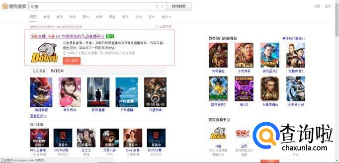 首先,打开搜狗浏览器,搜索“斗鱼”。