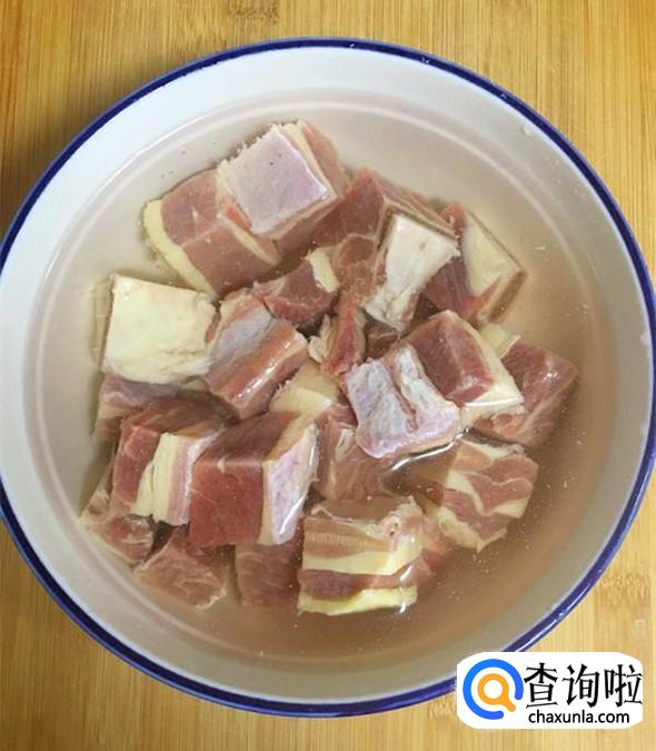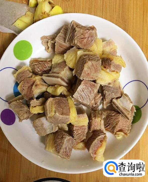 牛肉用温水清洗干净后,切成小块,放入水中浸泡20分钟左右,浸出其中的血水。期间可以换几次水,直到水变得清爽为止。