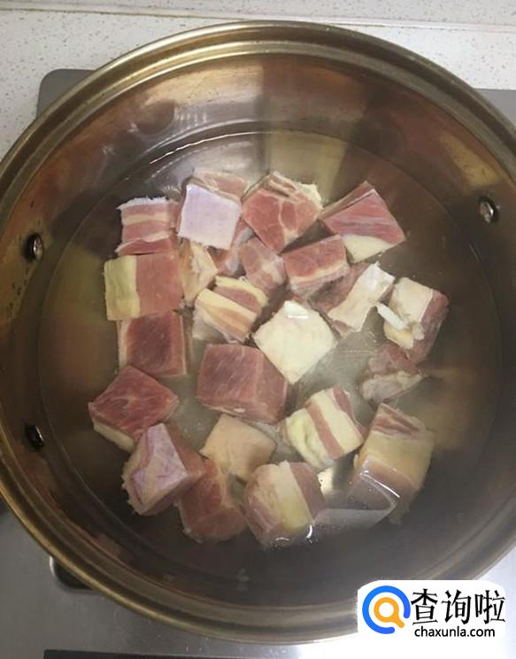 锅中加入适量水,把清洗干净的牛肉放入锅中汆水。