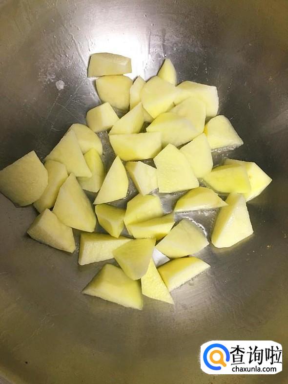 土豆洗净后去皮,切成小块。