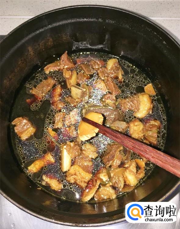 当牛肉软烂时,挑出其中的生姜片、香葱以及香叶,丢弃不用。