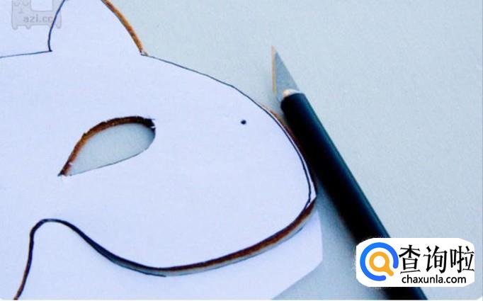 先按照孩子的脸部大小在一张纸上画出狐狸的轮廓,然后用剪子把狐狸的模具减下来,把眼睛部分也要剪好裁下来。