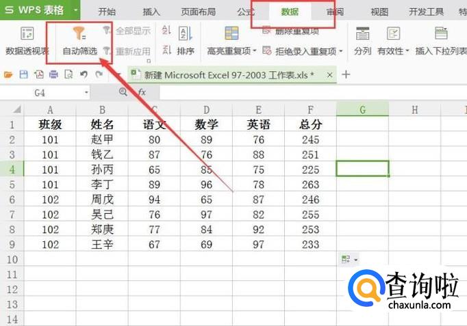 点击软件界面顶部的“数据”菜单按钮,选择“自动筛选”按钮。