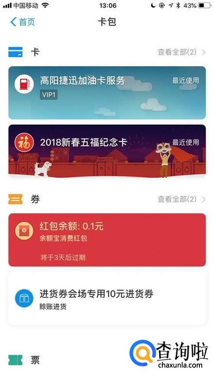 然后点击屏幕右上方的卡包,如下图所示。