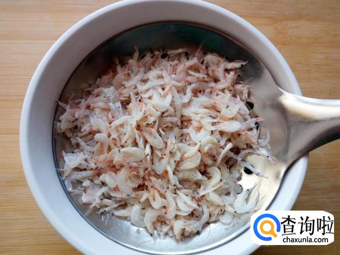 虾皮用水冲洗一下,控干水分。