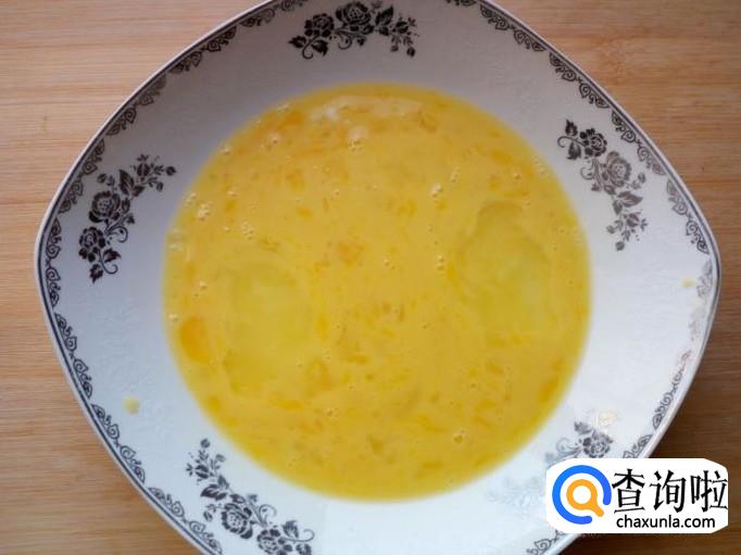鸡蛋打入盘中,搅拌成鸡蛋液。