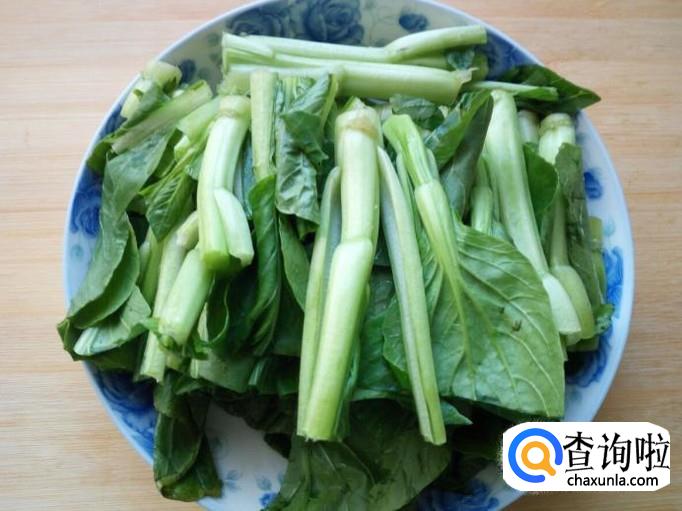 菜心收拾清洗干净,控干水分,用刀在中间断开,切成段。