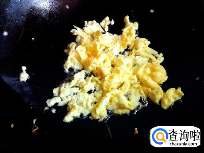 鸡蛋用锅炒出来,炒至八分熟,盛出备用。
