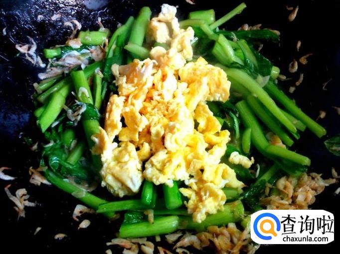 菜心 200克,虾皮 适量,鸡蛋 2个。