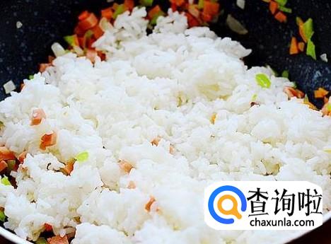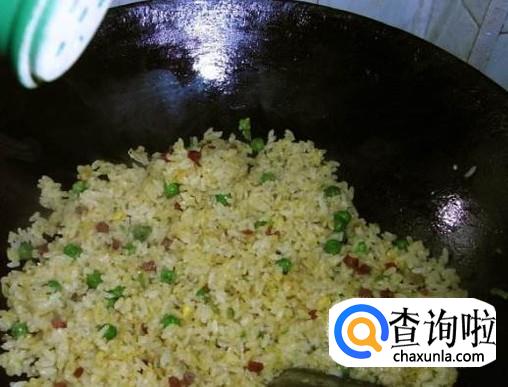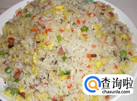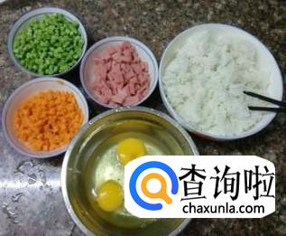 米饭,胡萝卜,鸡蛋,青豆,火腿,花生油,盐