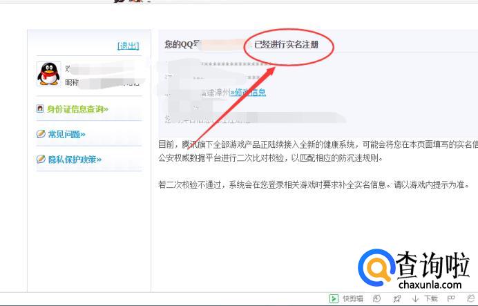 首先搜索并打开qq防沉迷,然后再输入身份信息,接着会显示已经进行实名注册,那就不会受防沉迷的影响了。以下用Windows 7系统华硕笔记本电脑给大家演示一下。
