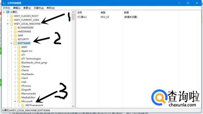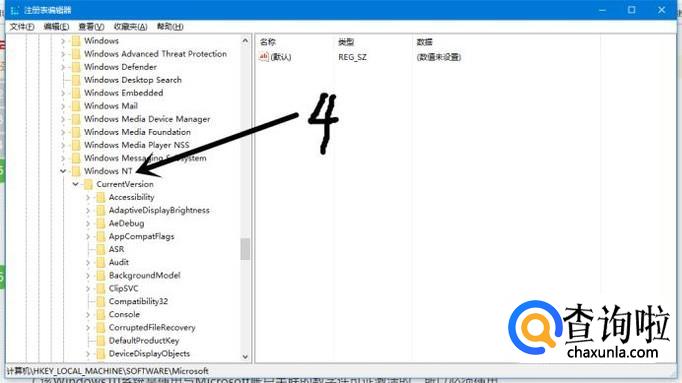 然后依次在注册表编辑器中点击HKEY_LOCAL_MACHINESOFTWAREMicrosoftWindows NT