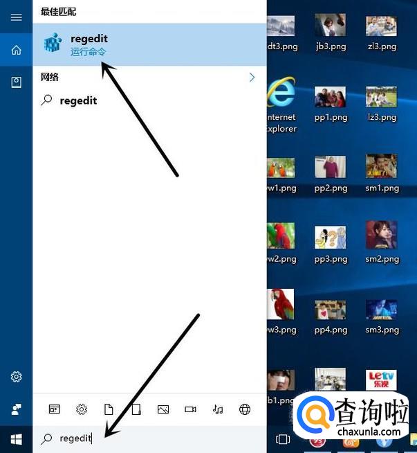 首先我们在电脑桌面左下角搜索框中输入regedit,点击regedit,进入注册表编辑器