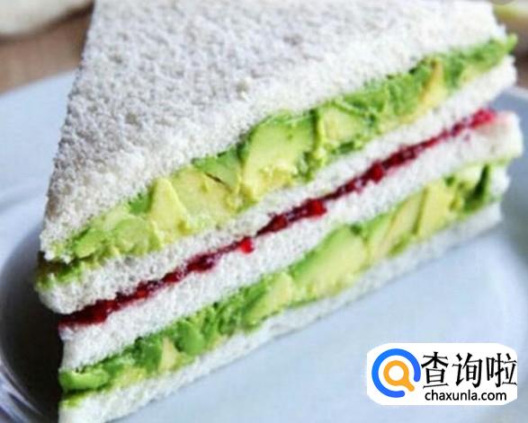 牛油果三明治,将牛油果弄成泥装,摸到三明治上,再加入一些自己喜欢的食物,一道简单美味的早餐就好啦。