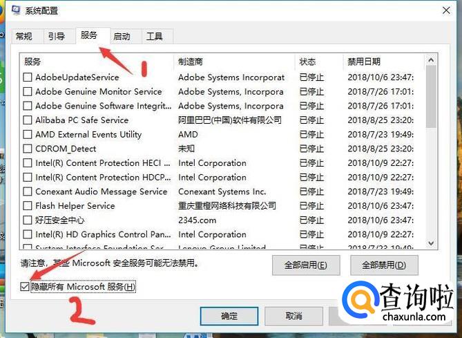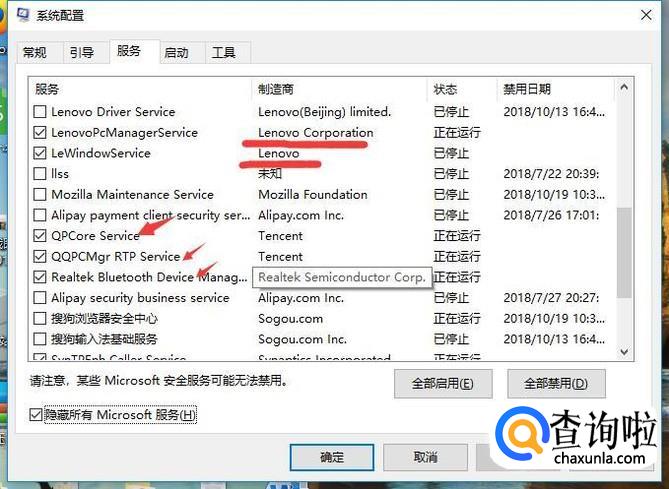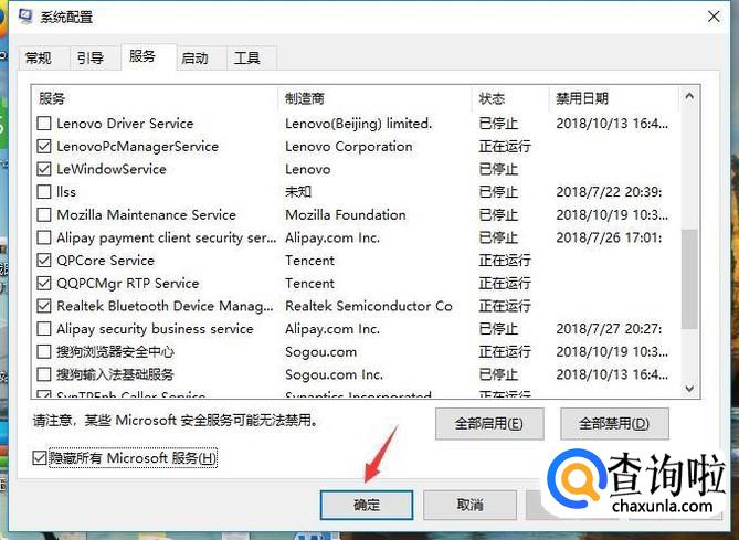 Microsoft服务不能禁用。带有Lenovo 和Tencent标识的服务不要禁用