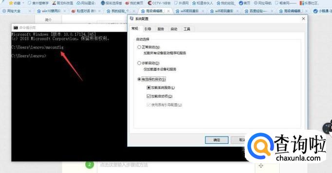 按win+R组合键,输入msconfig 并按回车。或者在小娜处搜索cmd进入命令窗口,输入msconfig并回车。进入系统配置