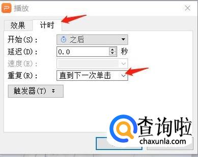在弹出的界面,点击上方计时,在重复里选择“直到幻灯片结束”即可一直播放该音乐