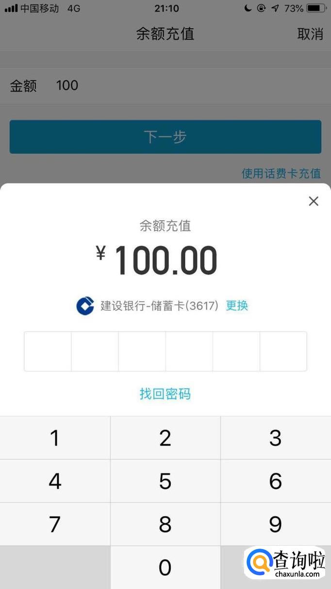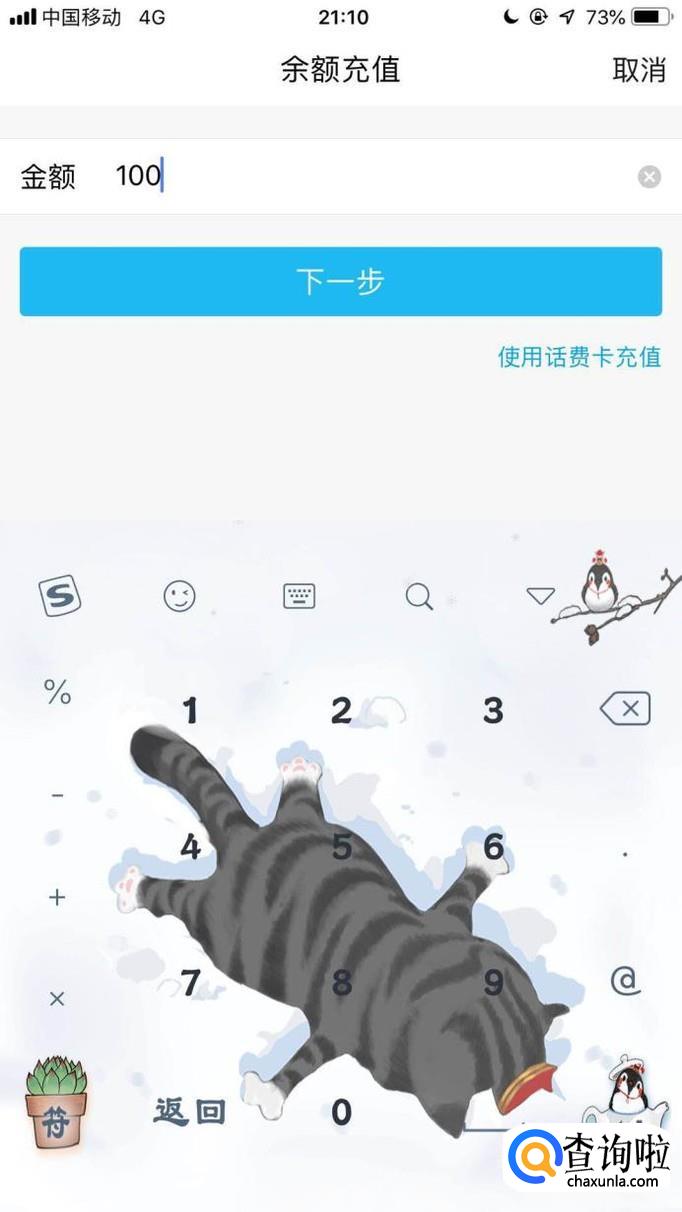 然后输入你要充值的金额,并点击下一步,如下图所示。