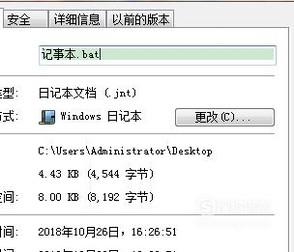 接着将txt格式的后缀改成.bat,如下图所示。