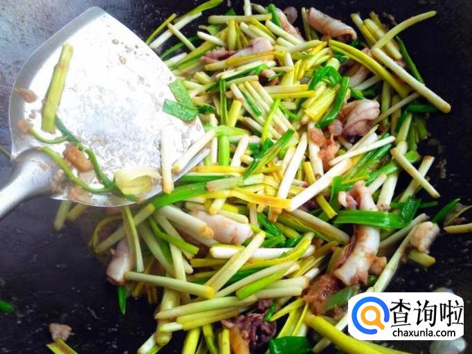 把蒜黄放进锅里,用大火快速的翻炒。