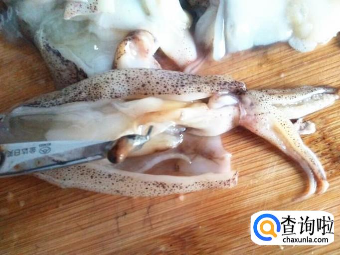 将海兔内脏翻出来,就会看到有一个黑黑的东西,这个是墨袋,一定要摘下来,不然炒出来的海兔颜色很难看的。