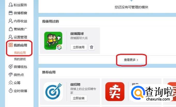 左侧栏里点击“我的应用”,然后如图所示,点击“查看更多”。