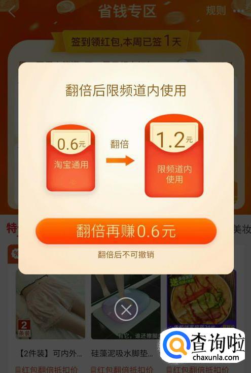淘宝签到领红包在哪里?现金红包怎么翻倍用