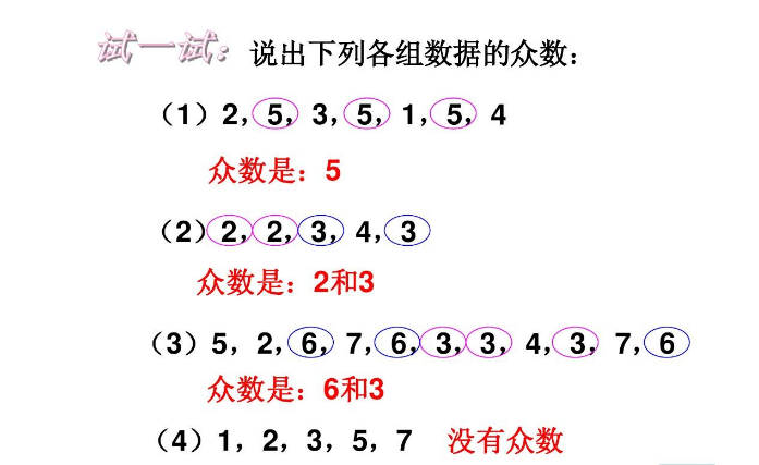 一般来说,一组数据中,出现次数最多的数就叫这组数据的众数。
