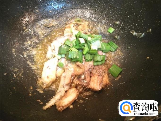 加入大蒜头,一定不要用铲子炒带鱼了,我这里是炒晚了,水份都干掉了。
